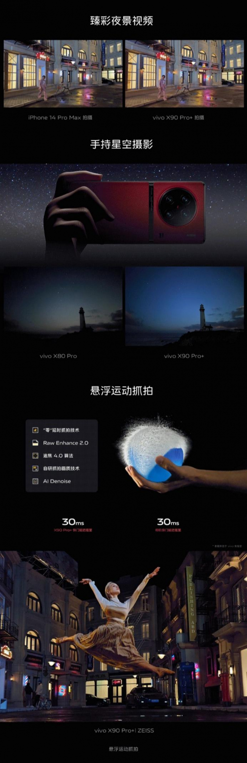 在vivo自研芯片V2加持下,X90 Pro+/Pro的这枚蔡司一英寸T*主摄还拥有很多让大家意想不到的影像体验,如臻彩夜景视频、手持星空摄影、悬浮运动抓拍。