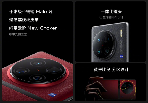 外观方面,vivo X90系列机身背部采用New Choker缎带云阶设计,将背部区域以黄金比例分割,让握持区和拍摄区完美平衡;一体化镜头采用C型同轴排布设计,拥有手术级不锈钢Halo环,在极端环境也能为镜头提供全方位保护。