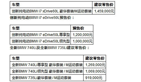 创新纯电动BMW i7 xDrive60L建议零售价: