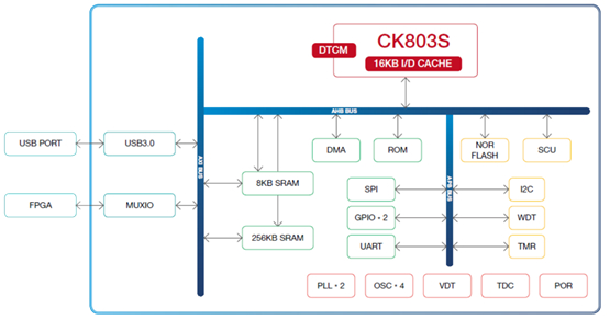 · CK803S内置16KB I/D Cache,内置32KB DTCM