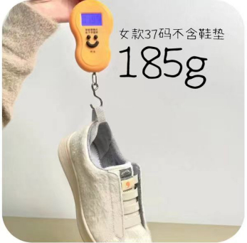 37码的单只鞋仅有185g重,更有网友晒出了自己实际测量的图片,180g相当于三个鸡蛋的重量,据网友试穿反馈暴走5公里轻松不累脚。