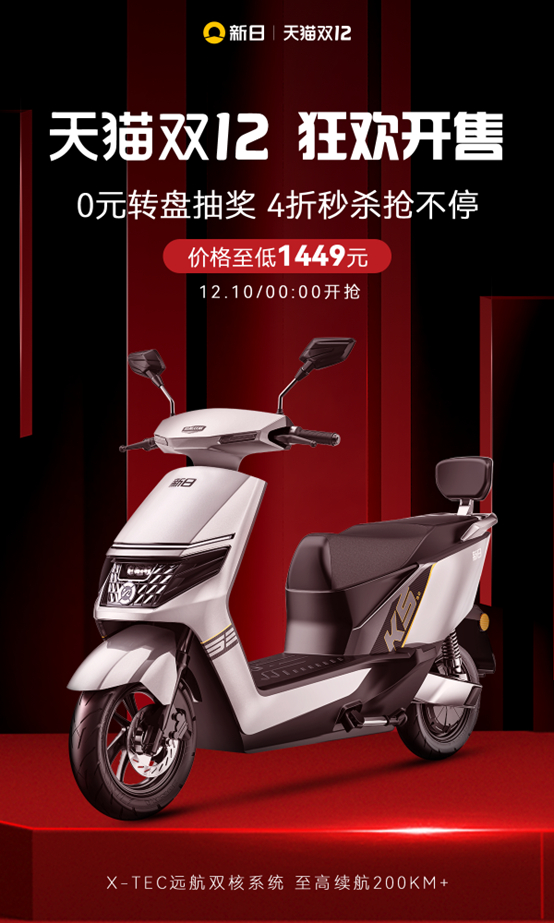 技术上,新日K5 3.0配备了X-TEC远航双核系统,通过对电机、控制器、电池、刹车系统的升级,以及对造型、轮胎、轴承和线缆方面的优化,让新日K5 3.0拥有了“一次充电,不止200KM”的逆天续航能力,不仅可以轻松满足用户的跨城通勤需求,还能远离续航焦虑,是当之无愧的“城市远航神车”,让出行真正自由!借此双12入手,优惠、福礼叠加,到手真的超值!