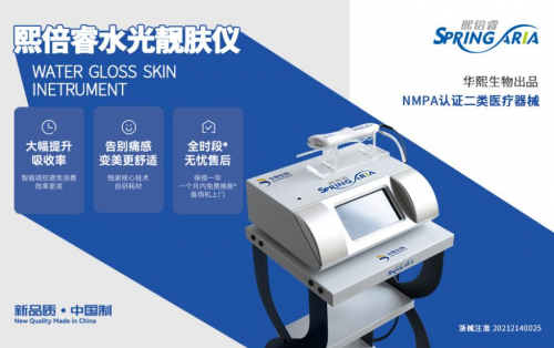 华熙生物旗下”熙倍睿SpringAria”陆续推出水光靓肤仪和水光针头,并且获得NMPA认证,一举成为国内为数不多的同品牌仪器和水光针头同时具有认证的品牌。