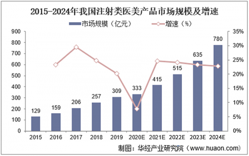 (2015-2024年我国注射类医美产品市场规模及增速)