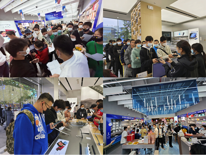 除了线上销量实现“全满贯”,线下门店更是人声鼎沸,热度非凡。X90系列开售后,全国各地的vivo体验店/专卖店和其他线下门店,挤满了前来体验和预约购机的消费者。许多门店都再现了人山人海、踊跃排队的火爆场面,vivo X90系列的受欢迎程度可见一斑。