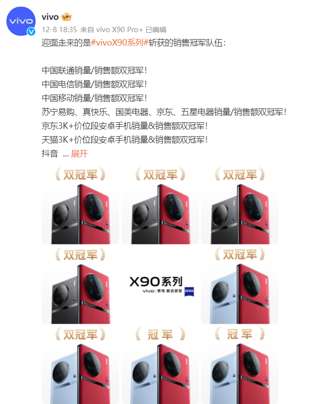 稳坐“冠军”席位!vivo X90开售销量同比X80增长2倍