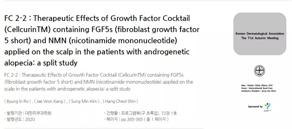 原文标题:《FC2-2:含有FGF5s(成纤维细胞生长因子5短肽)和NMN(烟酰胺单核苷酸)的生长因子鸡尾酒(CellcurinTM)对雄激素性脱发患者头皮的治疗作用》