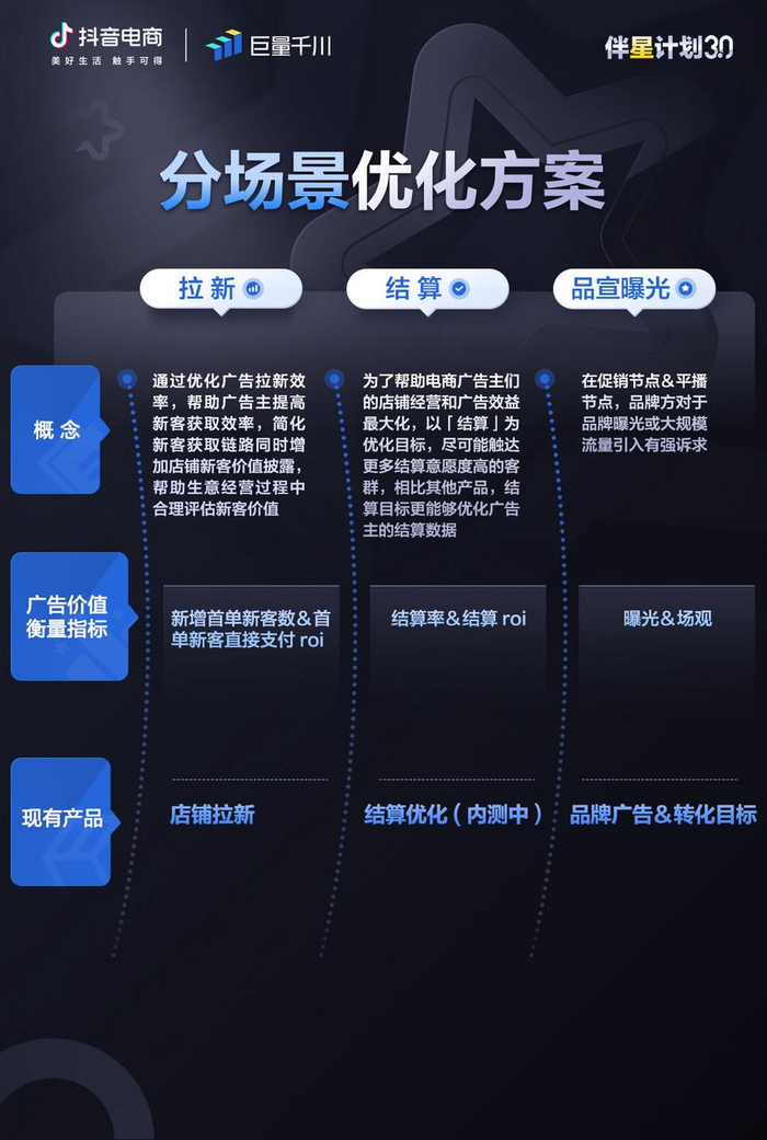 为给抖音电商服务商更多经营与投放启发,「伴星计划3.0」后续还将输出有关大促、冷启动场景的策略和产品应用指南,敬请期待!