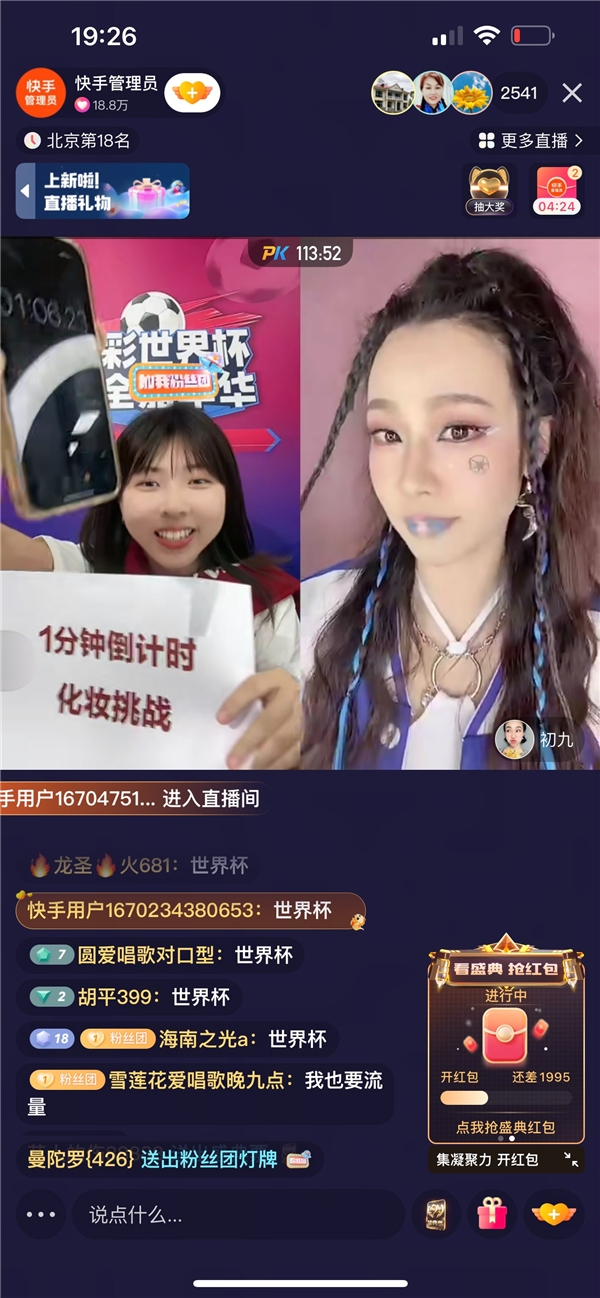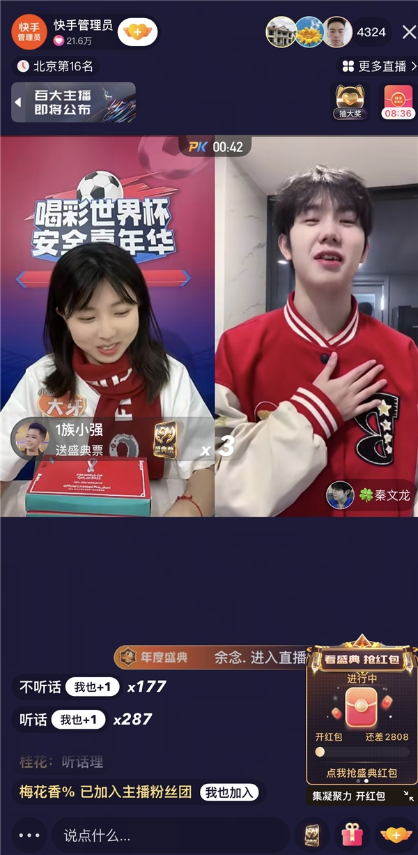 快手管理员直播连麦各路达人,畅聊安全世界杯