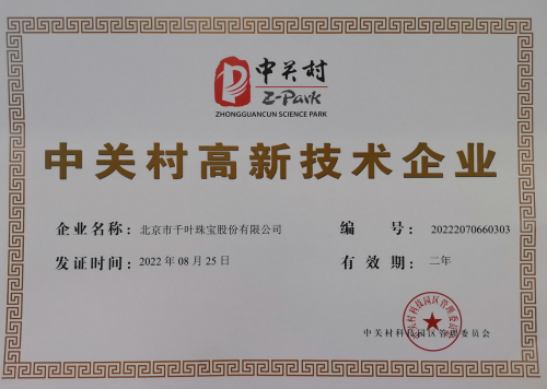 近日,千叶珠宝被颁发了《中关村高新技术企业》证书,该证书的认定条件正是以企业自主研发和创新能力为核心来评判。早在公司成立之时,千叶珠宝就确立了以科技驱动技术创新的核心研发策略。为支持技术革新,公司每年投入大量人力、物力用于研究珠宝生产工艺,获得56件专利。其中发明专利4件、实用新型专利13件、外观专利39件,并拥有著作权13件。