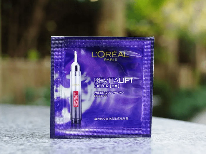 铝箔袋包中小样的渗透力很强,无论是CS店铺,还是商超和专柜,都不难发现其踪影。不过,它的弱点也很明显,就是价值感不强,附属性高,尤其在品牌高端化的当下,这类中小样的使用场景越来越受限,很难给品牌带来价值提升。