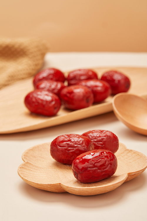 红枣位列五果之首,富含维生素C、蛋白质、多种人体必需氨基酸、以及磷、钙、铁等微量元素和环磷酸腺苷(cAMP)、环磷酸鸟苷(cGMP)、皂甙类、黄酮类、多酚类等功能成分,还含有胡萝卜素、B族维生素、维生素E、维生素P等。