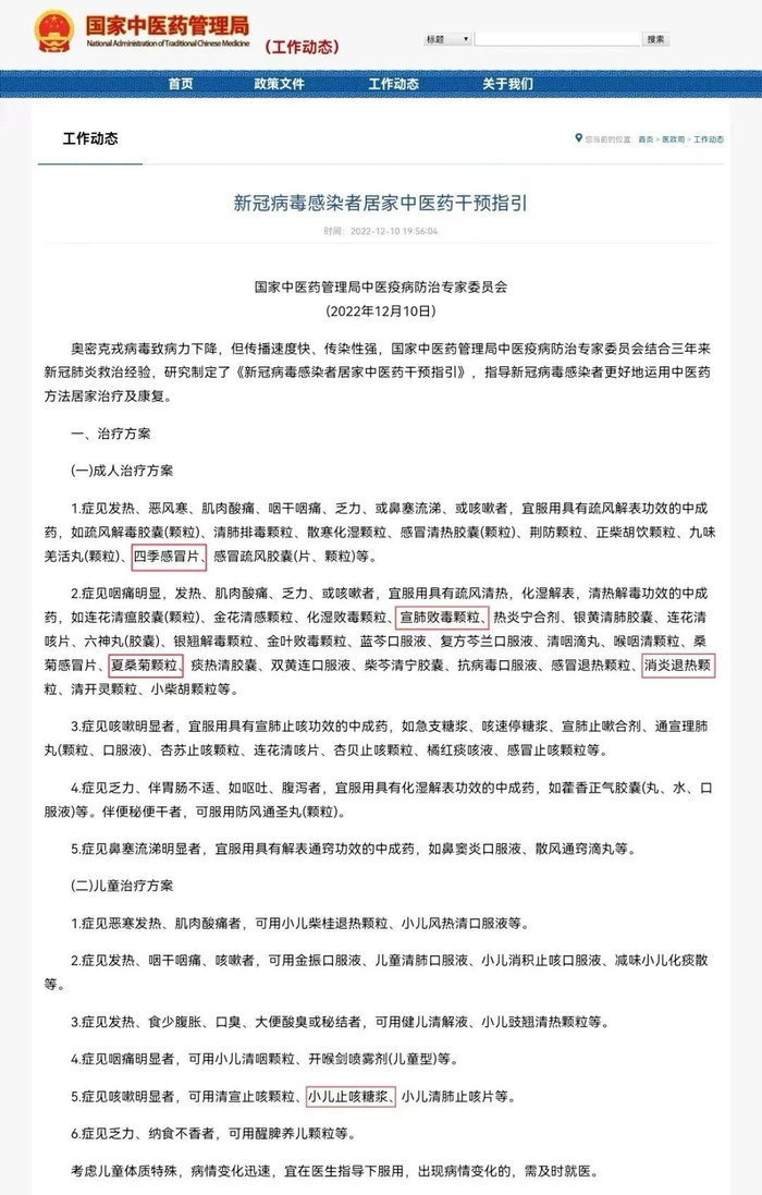 12月10日,国家中医药管理局中医疫病防治专家委员会整理发布了《新冠病毒感染者居家中医药干预指引》,根据不同症状推荐了诸多中成药,以便大家居家时根据情况按需指导用药。