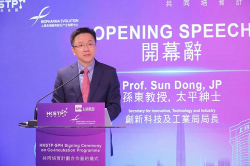 香港创新科技及工业局局长孙东出席活动并见证签署仪式。他在致辞时表示,国家“十四五”规划明确支持北京、上海及粤港澳大湾区成为国际科技创新中心,也支持香港建设国际创新科技中心。十分乐见科技园公司、上海医药和前沿产业创新中心通过此番落实的合作计划,促进两地联合孵化企业和相关的科研转化;希望计划能培育更多优质的初创企业,助力推动香港生命健康科技产业的发展。