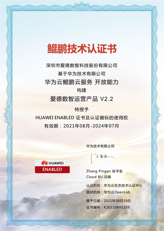 ②2021年6月,爱德JAVA应用开发平台产品V1.0通过Kunpeng 920 CPU平台的兼容性测试验证。