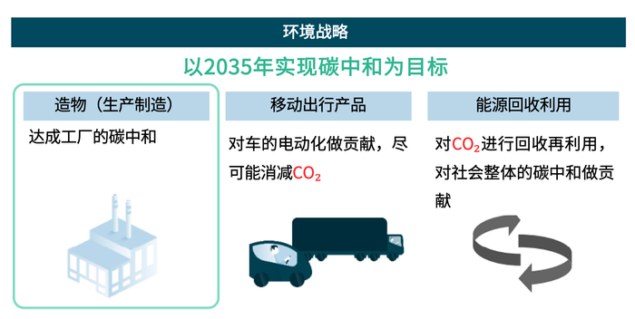 在促进实现碳中和的共同愿景下,电装集团结合自身解决社会问题和可持续事业并存的基本理念制定了环境战略,并明确了以2035年实现碳中和(零CO₂排放)为目标。通过造物(生产制造)、移动出行产品、能源回收利用这三个重要领域加强实施,切实提升竞争力。其中造物作为生产活动的基础,涉及生产材料、零部件、能源使用等多方面,更具有举足轻重的作用和影响。