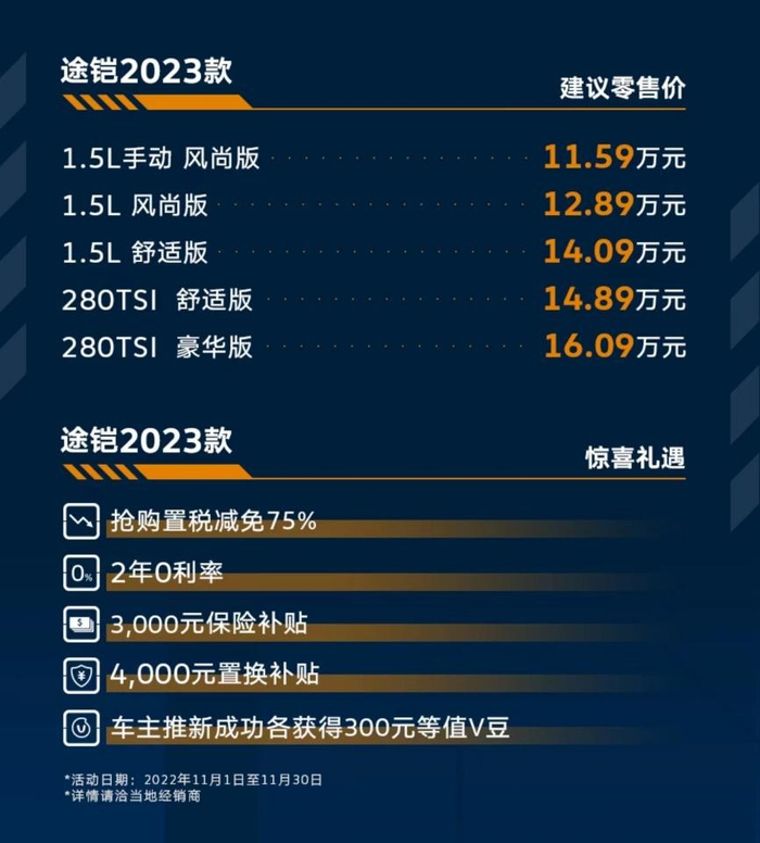 作为一个消费者,途铠可以说是非常符合我对SUV的需求。不但外观出众,实力强劲,性价比也非常不错。年轻人想要购置SUV车型的话,途铠会是不错的选择。2023款的上市,给途铠带来了不少的购车福利,千万不要错过。