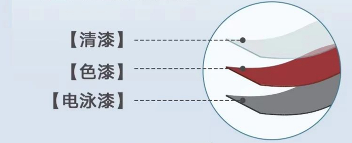 2、车漆主要分为清漆、色漆、电泳漆,三层若看到两种以上不同的颜色时,便是划到了爱车的漆底层。