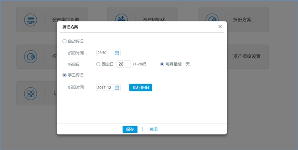 同时,为了方便盘点,华天动力协同OA系统固定资产管理还可以还提供了自动计提折旧的功能。可以为不同的物品设置不同的折旧率,估算在库资产和使用中物资的净值和残值,及时检查并维修物品,提前补充物资,保障企业的固定资产使用正常秩序。