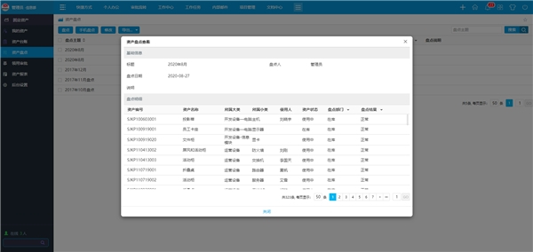 很多企业都有固定资产的年中盘点和年末盘点等定期的资产盘点,OA系统中可制定由相关部门共同盘点,例如由行政部和财务部共同执行,盘点固定资产的实有数,并与固定资产账面数核对,做到帐务、实物、和固定资产卡片相核对一致。若有盘盈或盘亏,需编报“固定资产盘盈盘亏报告表”,列出原因和责任,报部门经理、行政部、财务部和总经理批准后,财务部进行相应的账务调整,同时财务部对台帐和固定资产卡片内容进行更新。