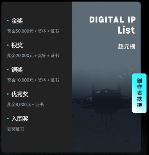 据悉,大赛评选结束后将在 2023 年 5 月 18 日举办盛大的颁奖活动。活动将邀请专家学者、投资机构、赛事协办方、品牌合作方、媒体宣发机构等相关代表参会。颁奖盛典包含获奖作品的展示汇报、优质数字 IP 成果转化签约等重要环节。