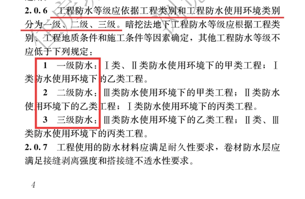 首先我们对于工程防水的基本规定比较关注,尤其是工程防水设计工作年限规定的第一项:地下工程防水设计工作年限不应低于工程结构设计工作年限。