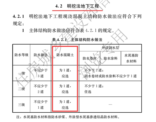 《通用规范》中关于防水混凝土的要求有三点: