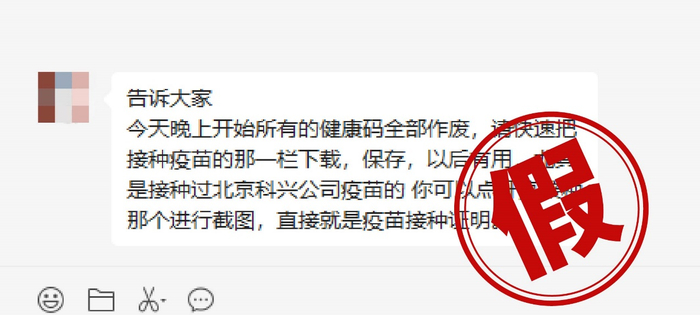 这则传言起因,“通信行程卡”服务下线,然而这条消息,却被改头换面套在了健康码上,网络出现“健康码要作废,要截屏疫苗接种记录,否则会找不到接种记录”的谣言。