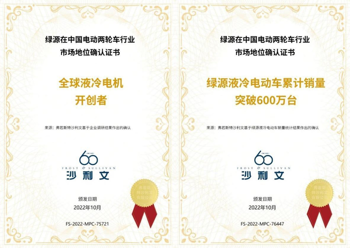 可以说,绿源液冷电动车的异军突起早已打破两轮电动车行业的销售格局。日前,基于对近几年中国两轮电动车市场的深度调研与行业研究,全球著名增长咨询公司弗若斯特沙利文(Frost& Sullivan,简称“沙利文”)官方确认了“绿源液冷电动车累计销量600万台”的销量成绩,这意味着每10秒钟就有一个用户选择了绿源液冷电动车。