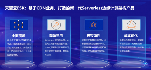 为助力企业实现应用极简上云、促进业务发展,天翼云基于智能边缘云ECX、CDN节点资源、云原生技术和智能调度策略,推出具有资源全面覆盖、简单易用、极致弹性、成本优化等功能优势的天翼云Serverless边缘容器 (简称ESK)。通过天翼云ESK,用户无需管理和运维集群即可在靠近用户的边缘侧快速创建Kubernetes容器应用,满足各类分布式应用的托管需求,从而有效提高部署效率,降低运维投入,让客户聚焦业务应用。同时,ESK根据应用实际使用的CPU、内存、网络资源进行按需付费,客户无需预先购置资源,在提高资源利用率的同时降低整体资源成本。