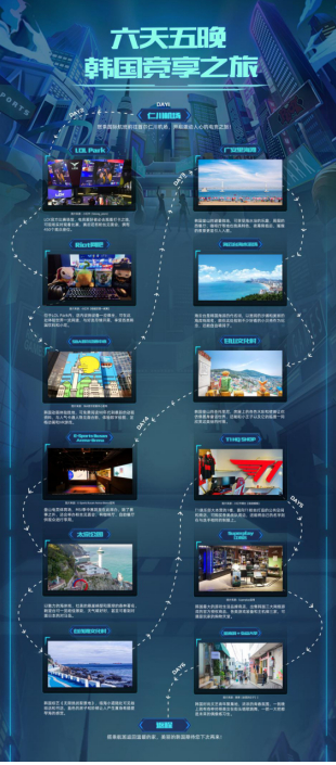 值得一提的是,作为韩国旅游发展局提供的重磅福利,这次旅游路线分为“五天四晚”和“六天五晚”双路线,冠军战队将前往LCK官方比赛场地——LOL Park、素有电竞人朝圣地之称的E-sports名誉殿堂等多个电竞特色景点观光打卡,全方位体验电竞氛围,还能观光SBA首尔动画中心、海云台海水浴场、Gold Pig Restaurant等旅游地标景点,让高校学子拥有对专业电竞赛事的深度体验,同时也让电竞迷们近距离感受电竞文化和韩国城市风光。