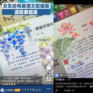 近日,QQ小世界绘圈创作者“书雁”因为给课本内容手绘国风插画而走红网络,亭亭净植的荷花、拥簇的紫萝藤……栩栩如生,惟妙惟肖,受到了环球时报、潇湘晨报等媒体的争先报道,网友们纷纷留言表示“课本都高级了”、“这才是教材该有的插画”。