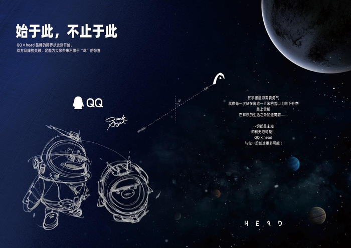 “始于此,不止于此”CHASING BETTER,也是这次联名款发布的主题,相信以后HEAD与QQ之间的合作会有更多的可能性。