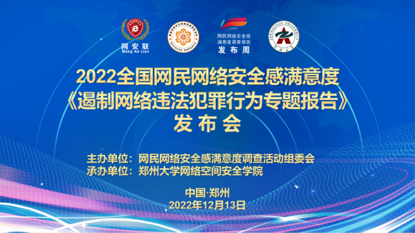 12月13日下午,“2022全国网民网络安全感满意度调查报告发布周—网安法治日”举办《遏制网络违法犯罪行为专题报告》发布会,面向全社会正式发布了报告。