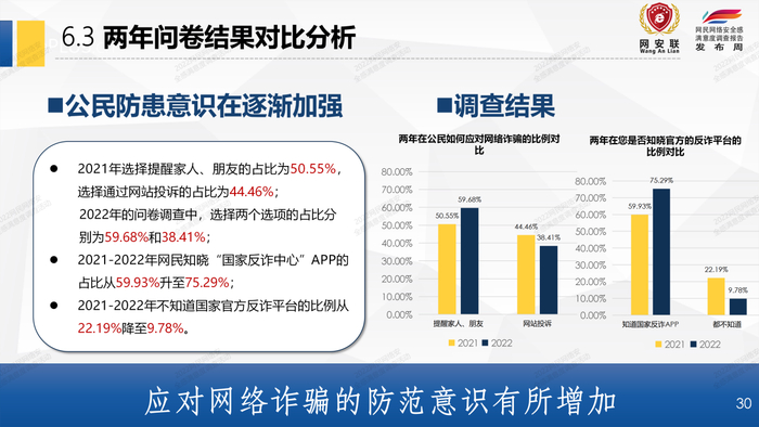 数据显示,参与调查的网民群众应对网络诈骗的防范意识有所增加。