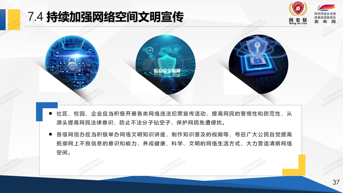 对于遏制网络违法犯罪行为的对策建议,专题报告中提了5个方面的建议: