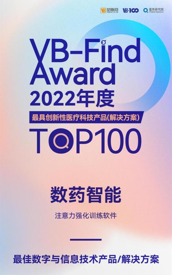 数药智能受邀参与,其《注意力强化训练软件》荣获最佳数字与信息技术产品/解决方案2022年度最具创新性医疗科技产品TOP100奖项。