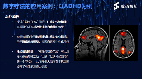 其病因除了已知的以遗传因素为重要诱因导致的大脑多区域、多个子系统的功能发育不全外,至今具体病灶仍无清晰明确的定位和溯源,无法有效根治ADHD,只能针对特定认知障碍进行对症治疗。