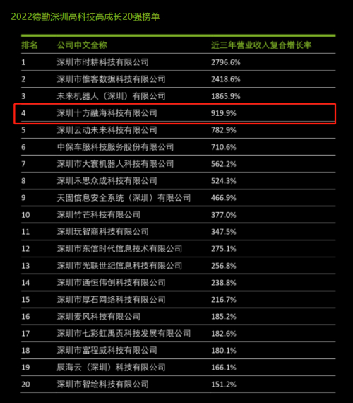 近3年营收复合增长率达919.9%,十方融海入选德勤深圳高科技高成长20强榜单
