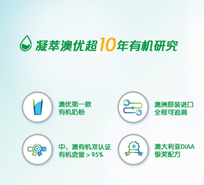 事实上,奶粉是否容易吸收、营养成分是否丰富,跟奶源有很大关系。近年来,澳洲的奶粉越来越受妈妈们的欢迎,这与其得天独厚的环境优势有着密切关系,好环境才会有好奶源,也才会有优质的奶粉产品。比如澳优淳璀有机奶粉,是凝萃澳优超10年有机研究打造的高品质奶粉,坚守有机奶粉的品质标准,挑剔全球有机奶源,并对奶粉配方进行了不断优化,更适合宝宝娇嫩的肠胃。