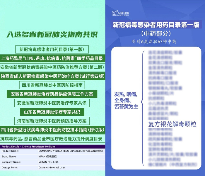 人民日报推荐:复方银花解毒颗粒为新冠病毒感染者用药