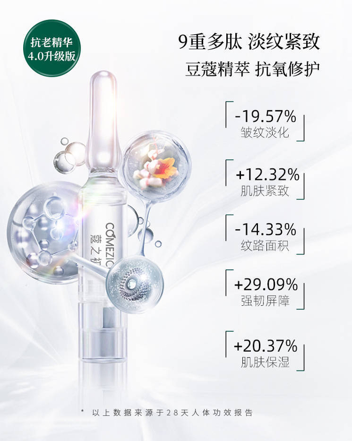 科技一定要引领产品迭代,才能真正摆脱纸上谈兵,开创新世纪的护肤新大陆,作为蔻之初的全维科技代表作,9肽驻颜瓶就是这样的存在。以其先锋的科技性和功效性,在抗衰史上划出代表性的一笔。一经推出,就受到杨澜等明星的一致推荐,并受到达人、消费者的认可追捧。