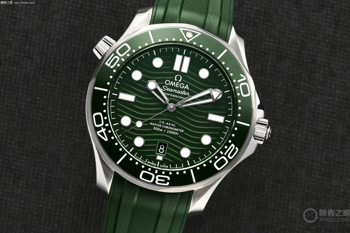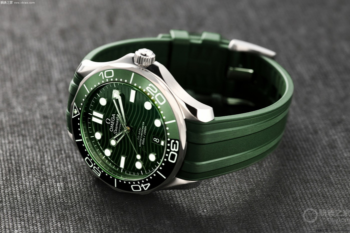 与其他的海马系列300米潜水表一样,这枚新款腕表的表壳为42毫米。腕表采用精钢材质打造,与此同时,有着欧米茄特色的深绿色陶瓷表圈上饰以白色珐琅潜水刻度。表盘的材质也采用抛光绿色陶瓷制成,激光镌刻波纹图案。