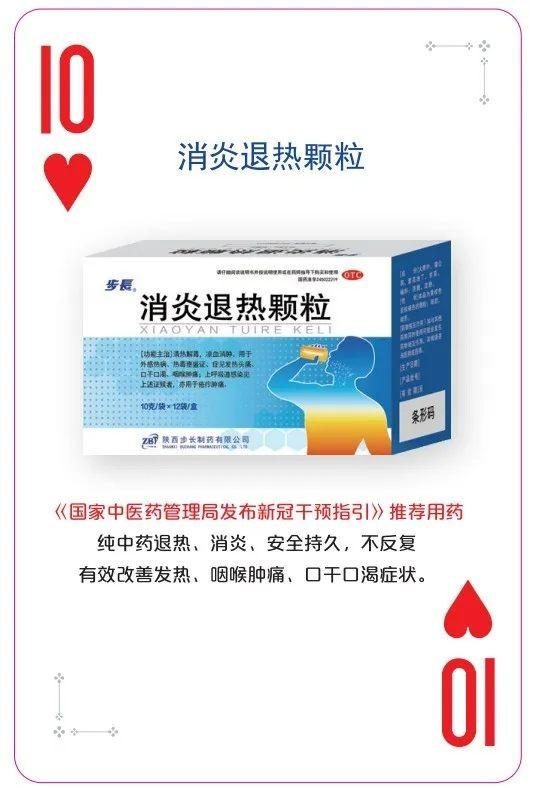 消炎退热颗粒,入选《国家中医药管理局发布新冠干预指引》推荐用药。对于新冠病毒感染及普通感冒出现的发热、咽喉肿痛、口干口渴症状效果明显。纯中药退热、安全持久不反复,38.5℃以下可单独用药,38.5℃以上联合用药。还可提高免疫力,预防新冠感染及并发肺炎、缩短病程。