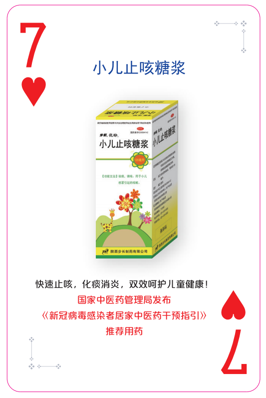 小儿止咳糖浆为“国家中医药管理局发布的《新冠病毒感染者居家中医药干预指引》”推荐用药,产品出自《金匮要略》,祛痰、镇咳,是经典的儿童感冒止咳化痰药。中西复方,标本兼治,口感香甜,无刺激、无依赖,抗菌、抗炎、抗病毒,具有快速止咳,化痰消炎的优势,双效呵护儿童健康!