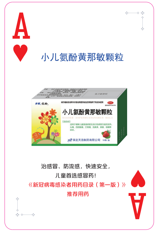 小儿氨酚黄那敏颗粒为《新冠病毒感染者用药目录(第一版)》推荐用药,是儿童常用感冒药,中西复方制剂,可快速缓解儿童各种感冒引起的发热、头痛、四肢酸痛、打喷嚏、流鼻涕、鼻塞、咽痛七大症状,不含金刚烷胺,不含咖啡因,安全更有效,产品具有快速起效、安全退热、效果全面、口味香甜4大特点,是儿童首选感冒药!