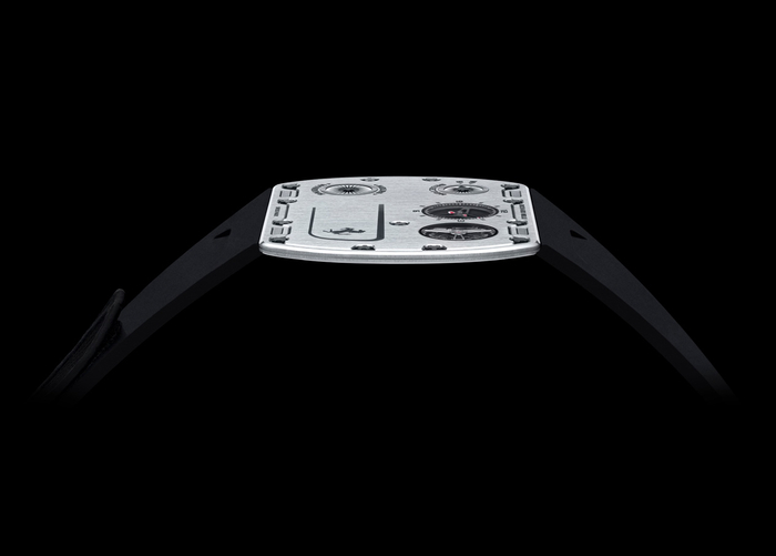 绿色Quartz TPT®石英纤维同样被用于底盖,而中层表壳则以缎面处理的五级钛合金打造,并配有Carbon TPT®碳纤维支柱。三层表壳有两个丁腈橡胶o型圈,防水深度达到50米,采用20颗五级钛合金花键螺丝和316L精钢耐磨垫片组装而成。