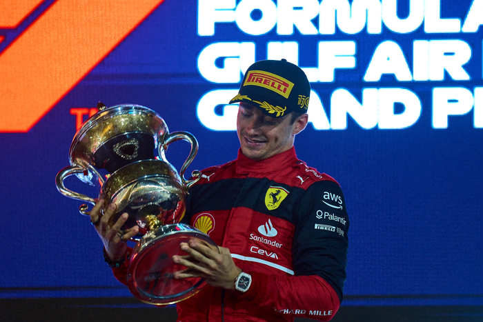 F1 2022赛季揭幕赛巴林大奖赛上,法拉利车队勒克莱尔(Charles Leclerc)佩戴RM 67-02原型腕表摘得第一名。