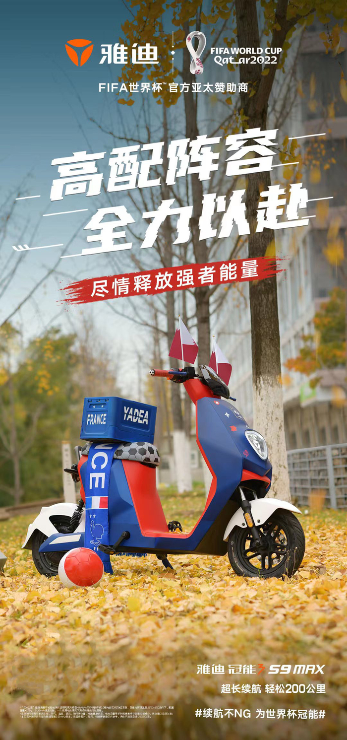 世界杯赛场内,来自世界各地的32支队伍,经过64场激烈角逐,争夺足球界最高荣誉——“大力神杯”。世界杯赛场外,中国赞助商也在各自的领域为成为“冠军”而不断拼搏。作为2022 FIFA世界杯官方亚太赞助商,雅迪持续突破行业技术上限,实现科技创新、产品体验上的跃迁与腾飞,是全球两轮电动车第一品牌,更是两轮电动出行领域当之无愧的冠军。