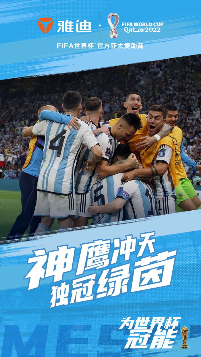 梅西捧起大力神杯,雅迪电动车为世界杯冠军“加冠”